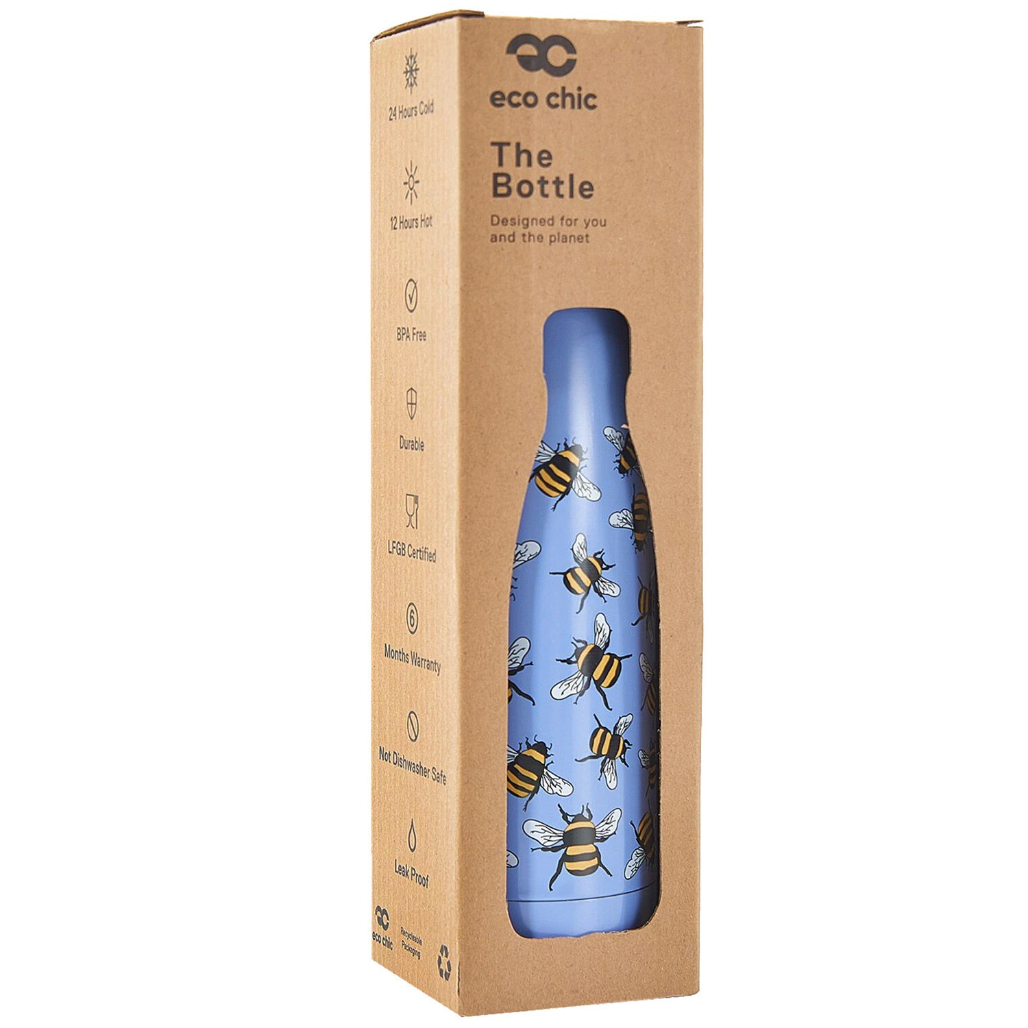 Eco Chic Blue Bumblebees 500ml Thermal Drinks Bottle