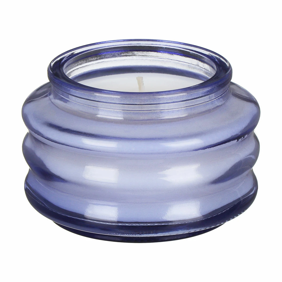 This beautiful candle is made from glass which has been shaped with a ripple effect. The purple glass vessel is complete with a matching lid. Once you have finished with your candle the glass pot is perfect for reusing for mini succulents or as a jewellery box.
