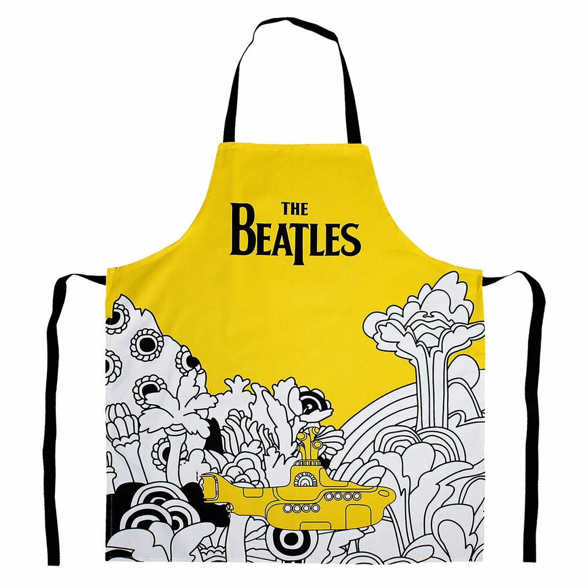 Made from recycled cotton, this gorgeous apron is decorated with a scene featuring the iconic yellow submarine from the film set amongst the ocean life with a psychedelic white and yellow background.