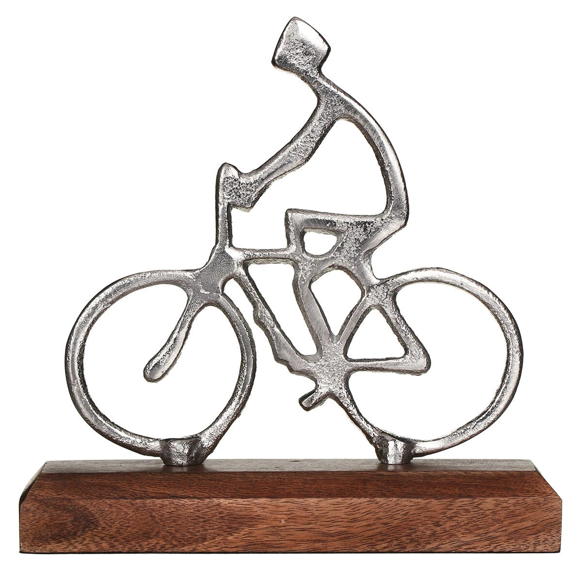 Transomnia Silver Metal Cyclist On Wooden Base Decoration