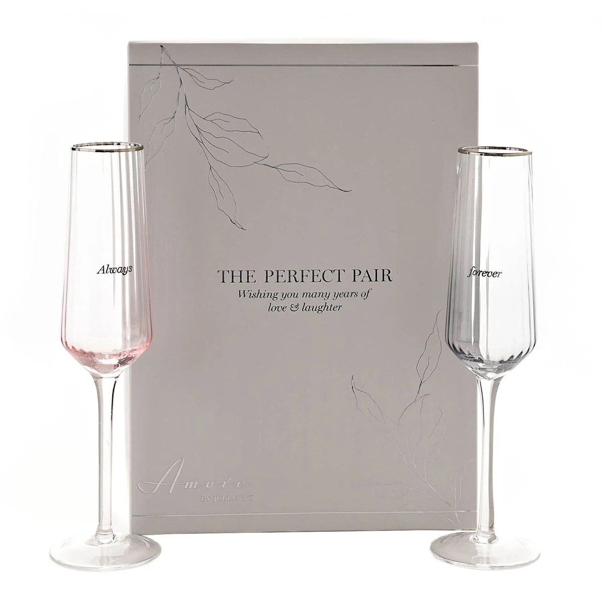 The perfect solution for that extra-special wedding or anniversary gift, this set of two glasses are designed with the words ‘Always & Forever’. Both glasses are tall and slim and perfect for drinking something bubbly!